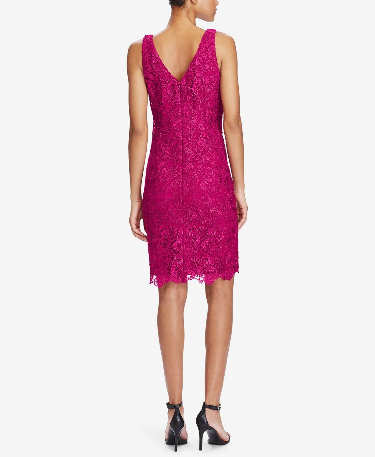 LAUREN RALPH LAUREN Womens Lace Boat Neck Dress Size 4 Color Venetian Rose