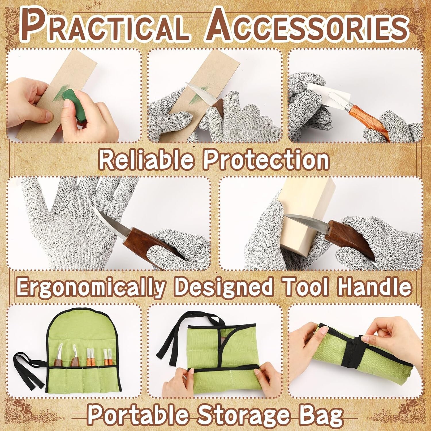Ergonomically designed wooden handles deliver comfort and precision, allowing for hours of carving without strain.