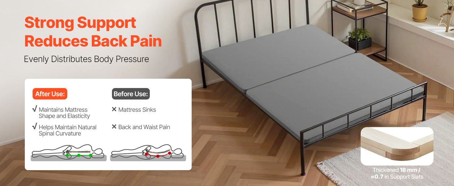 Heavy-Duty Wood Construction: Built with sturdy wood planks that are thickened by 1.5 in / 38 mm, providing solid support for your mattress. No worries about breaking or wear – just steady support for peace of mind