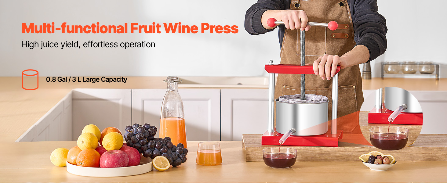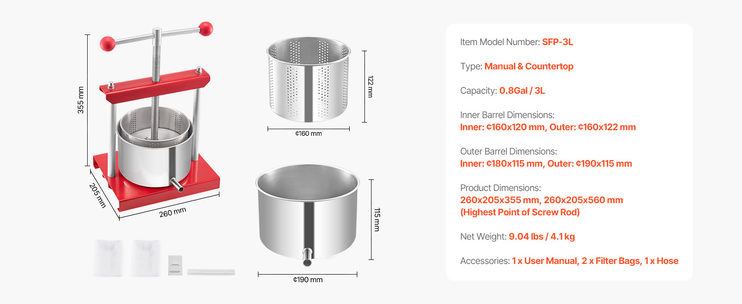 - Large Capacity: The 3L/0.8-gallon large-capacity design is ideal for family gatherings and parties, it provides an abundant supply of juice and can also press wine, cheese, fruit puree, olive oil, honey, and more