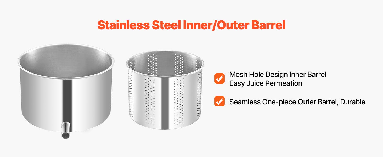 - Easy to Clean: The inner and outer barrels of the fruit and wine press can be disassembled for cleaning. Made of stainless steel, you can easily rinse away food stains, leaving it clean and shiny with minimal effort. You can also place it in the dishwasher for convenient and labor-saving cleaning