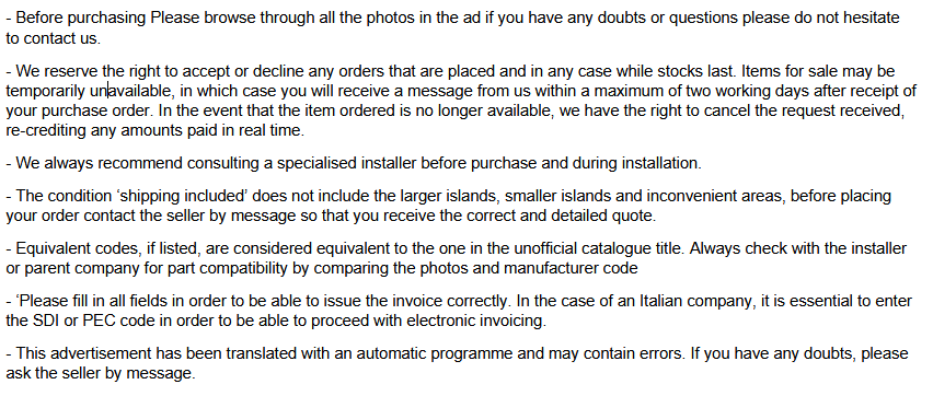 Vuoi che ci assicuriamo che questa parte sia adatta al tuo veicolo? Possiamo verificarlo! Tutto quello che devi fare è inviarci una foto della scheda tecnica e/o il riferimento del tuo pezzo.