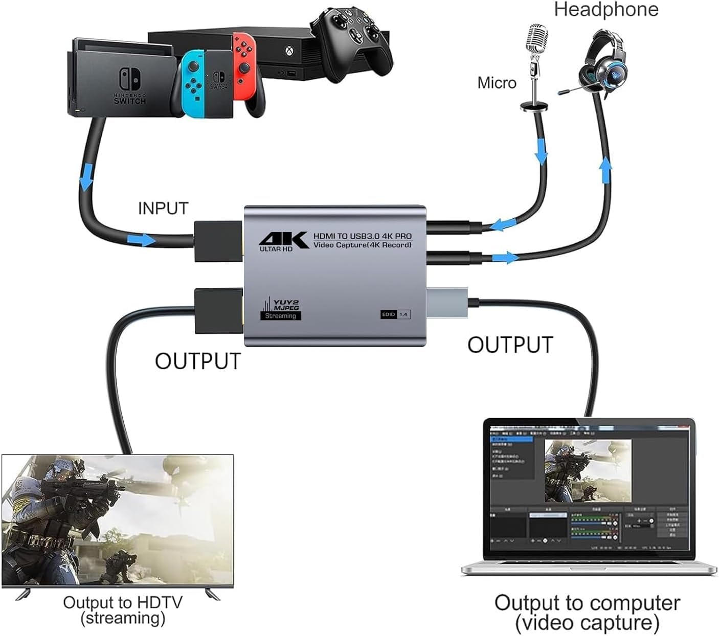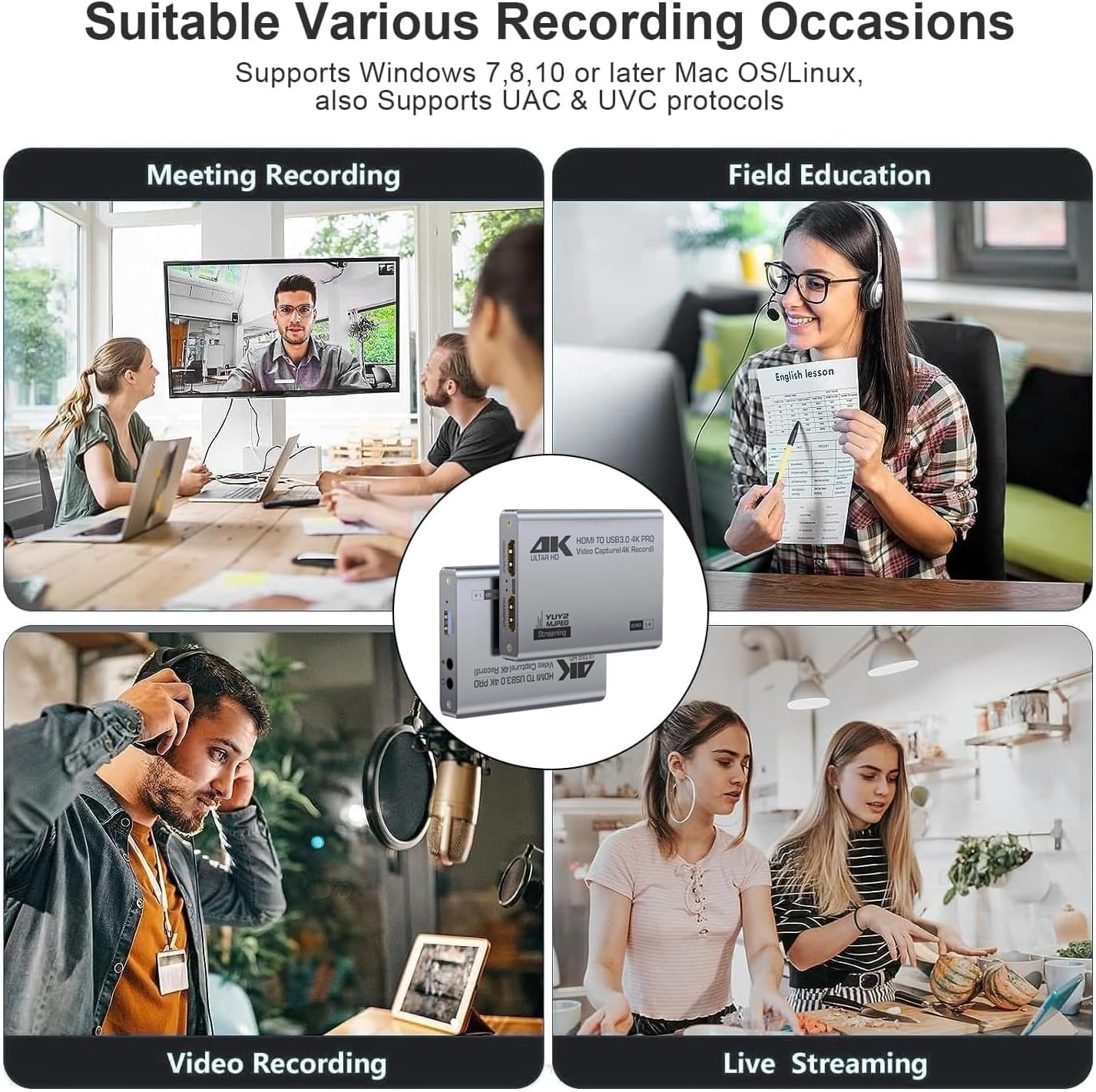 Scheda di acquisizione video 4K HDMI, scheda di acquisizione audio, scheda di acquisizione USB 3.0 4K HDMI Loop-Out, 1080P 60FPS/2K 30FPS Video Game Capture per streaming, funziona per
