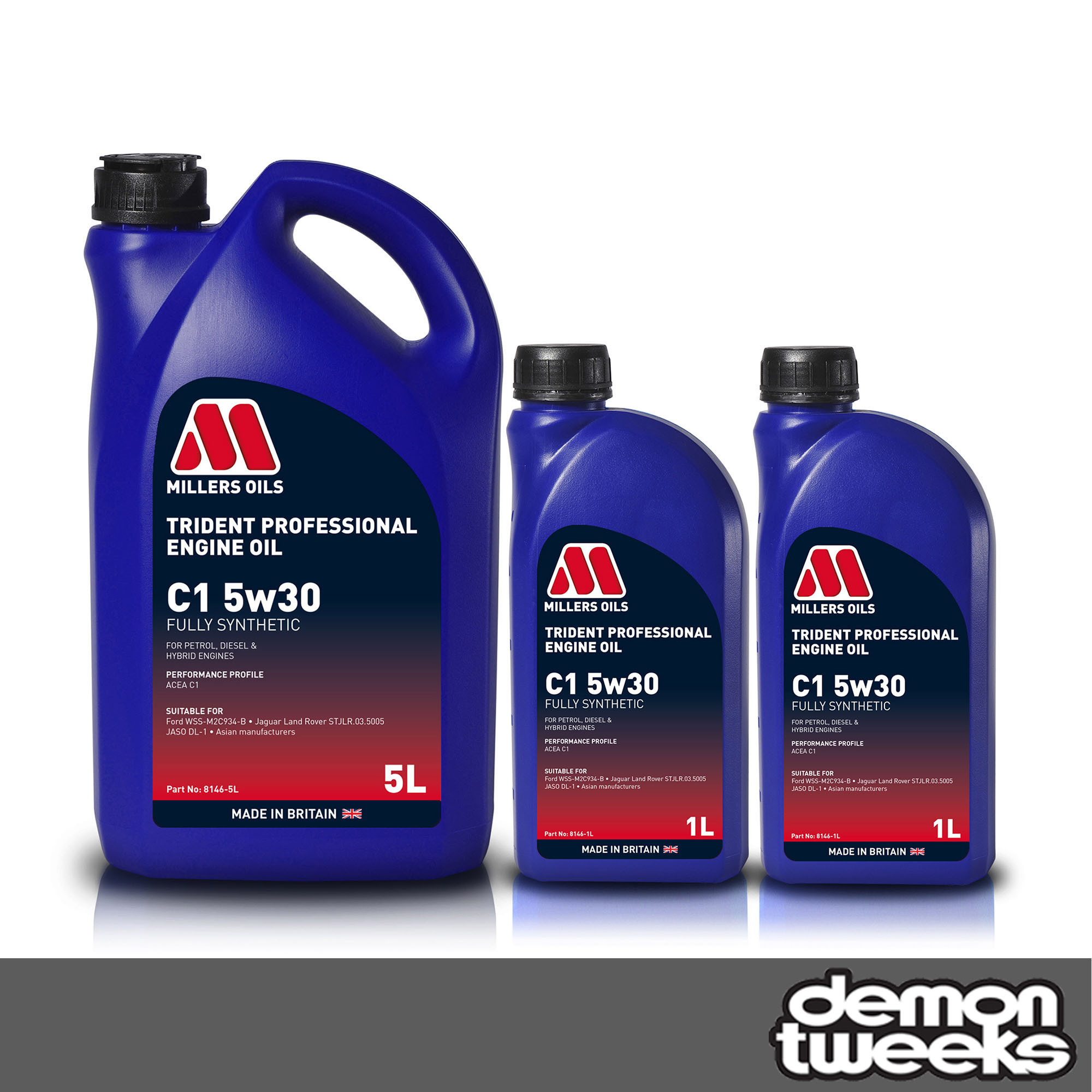 Millers Oils Trident Professional C1 5W30 is a fully synthetic engine oil suitable for the latest engine technology for use in petrol, diesel and hybrid engines. Formulated for OEM vehicles which require a C1 5w30 viscosity targeting Jaguar Land Rover vehicles fitted with DPF's. Formulated to provide engine cleanliness and durability which will reduced emissions, extends drain intervals and will also improve fuel economy. Millers stop start technology will deliver instant protection under hot and cold conditions, protecting your engine each and every time it stop starts.