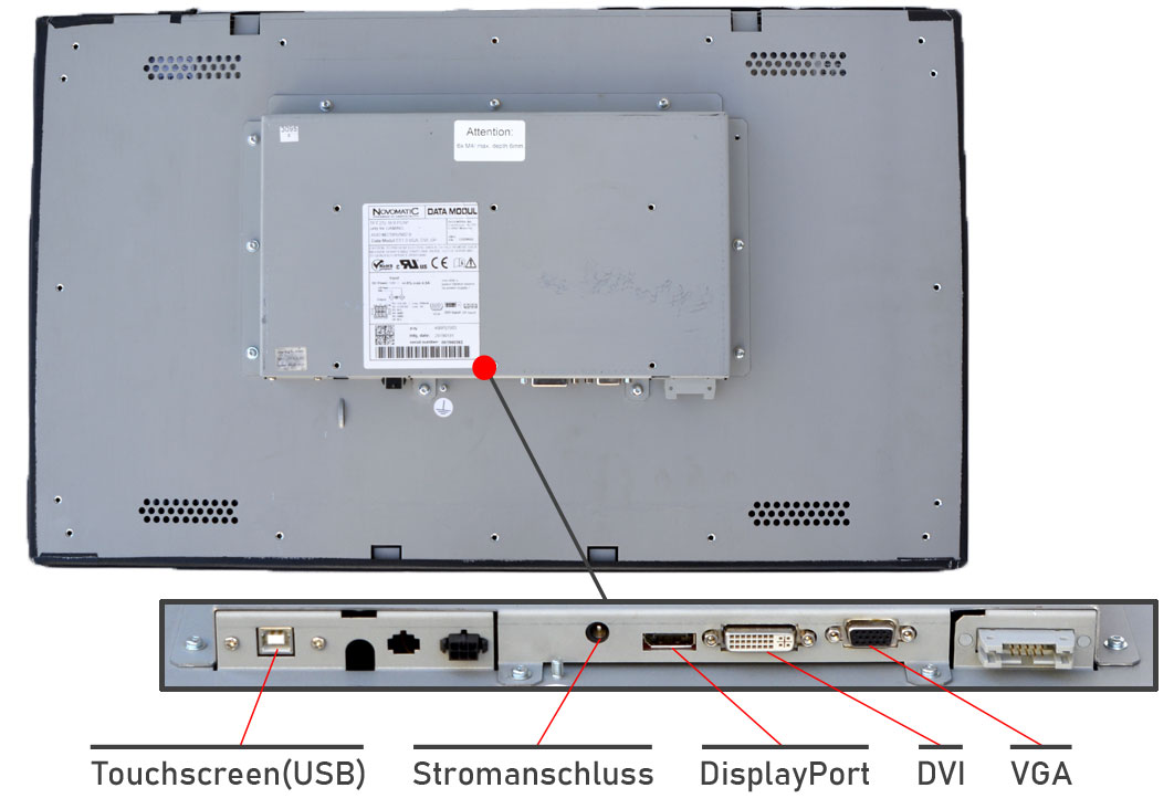 Anschlüsse: USB (für Touchfunktion); DisplayPort, DVI, VGA, Stromanschluss
