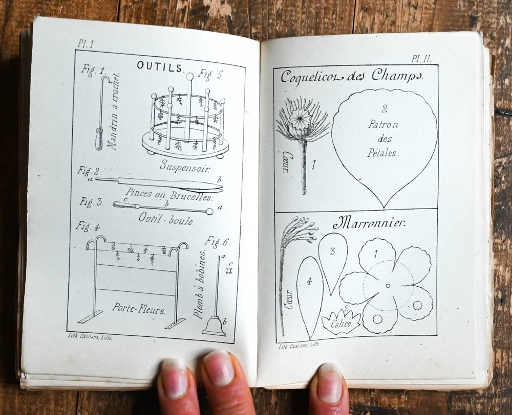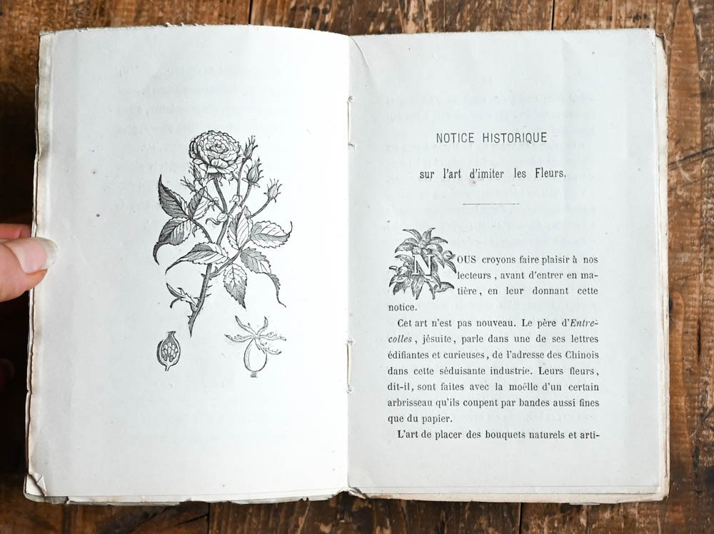 - Amply illustrated manual for the construction and arrangement of artficial flowers, here in a newer edition with supplementary plates that show the imitaions of real flowers (one at the beginning of the text andd 31 at the end). In between there are 25 plates that show the necessary instruments, plans and methods.