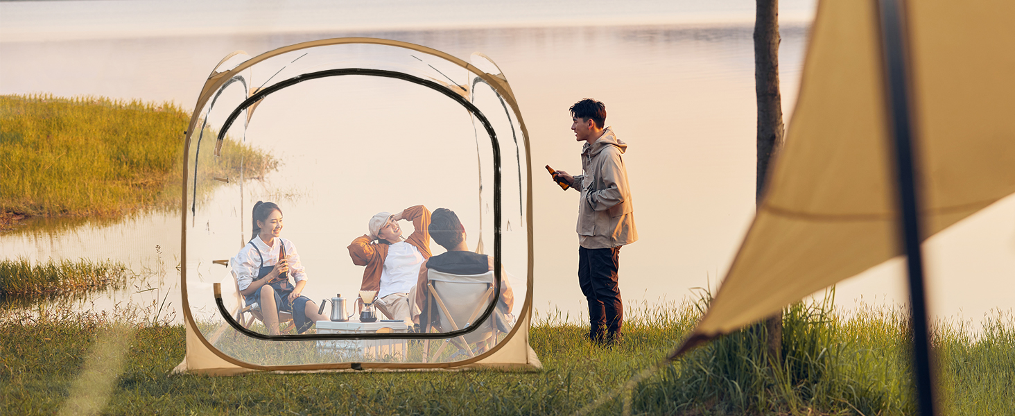 【Seasonal Protection】: During the summer you can enjoy additional sun protection to help maintain your temperature, zippered windows and doors help with ventilation and easy access. And during the winter your new outdoor bubble tent will protect you from the wind and rain, the inside of your screen house room stays warm thanks to the excellent heat retention.