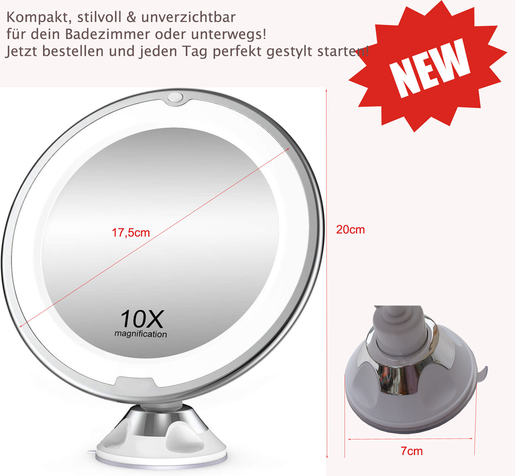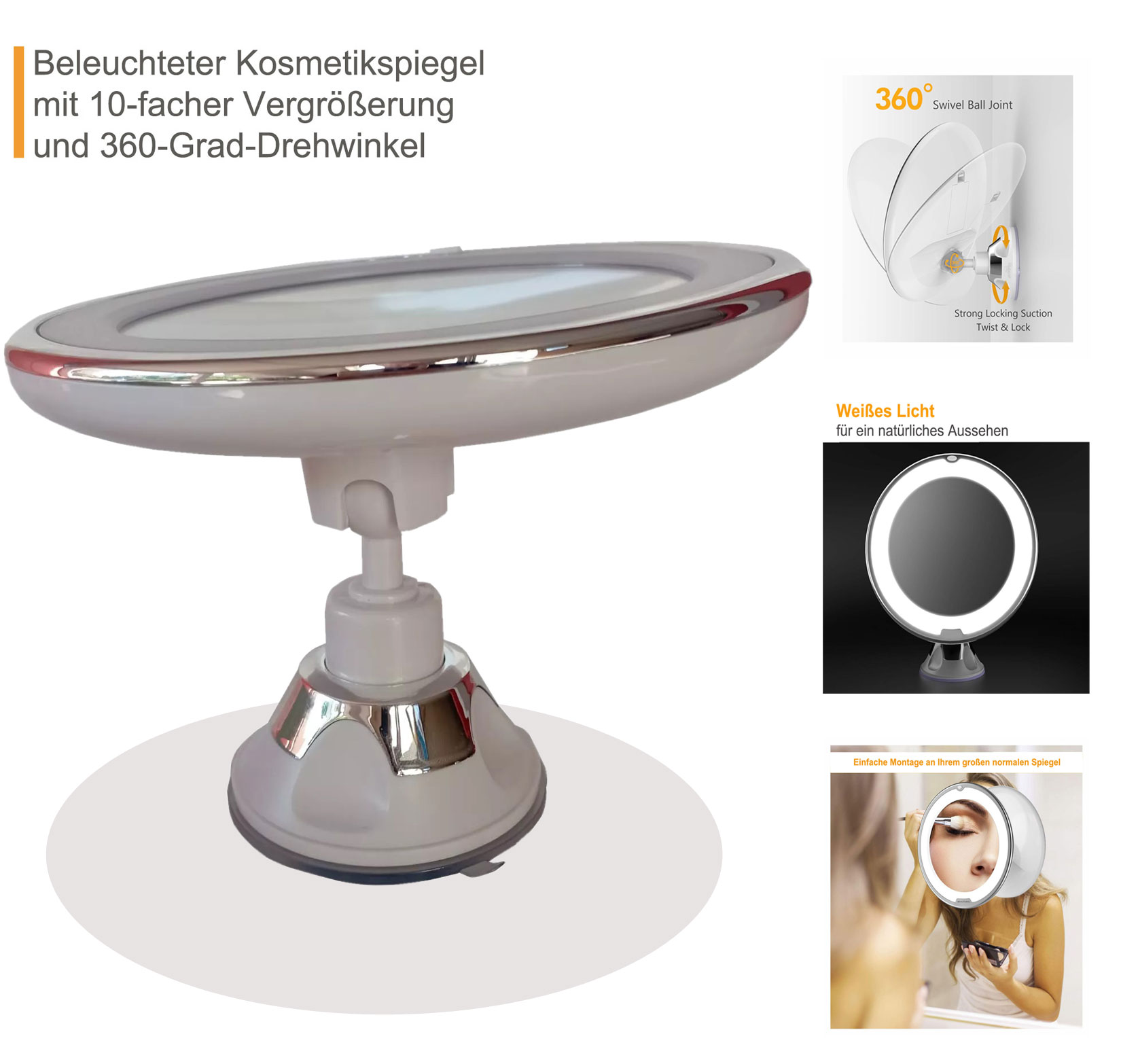 Entdecke den beleuchteten Kosmetikspiegel mit 10-facher Vergrößerung –