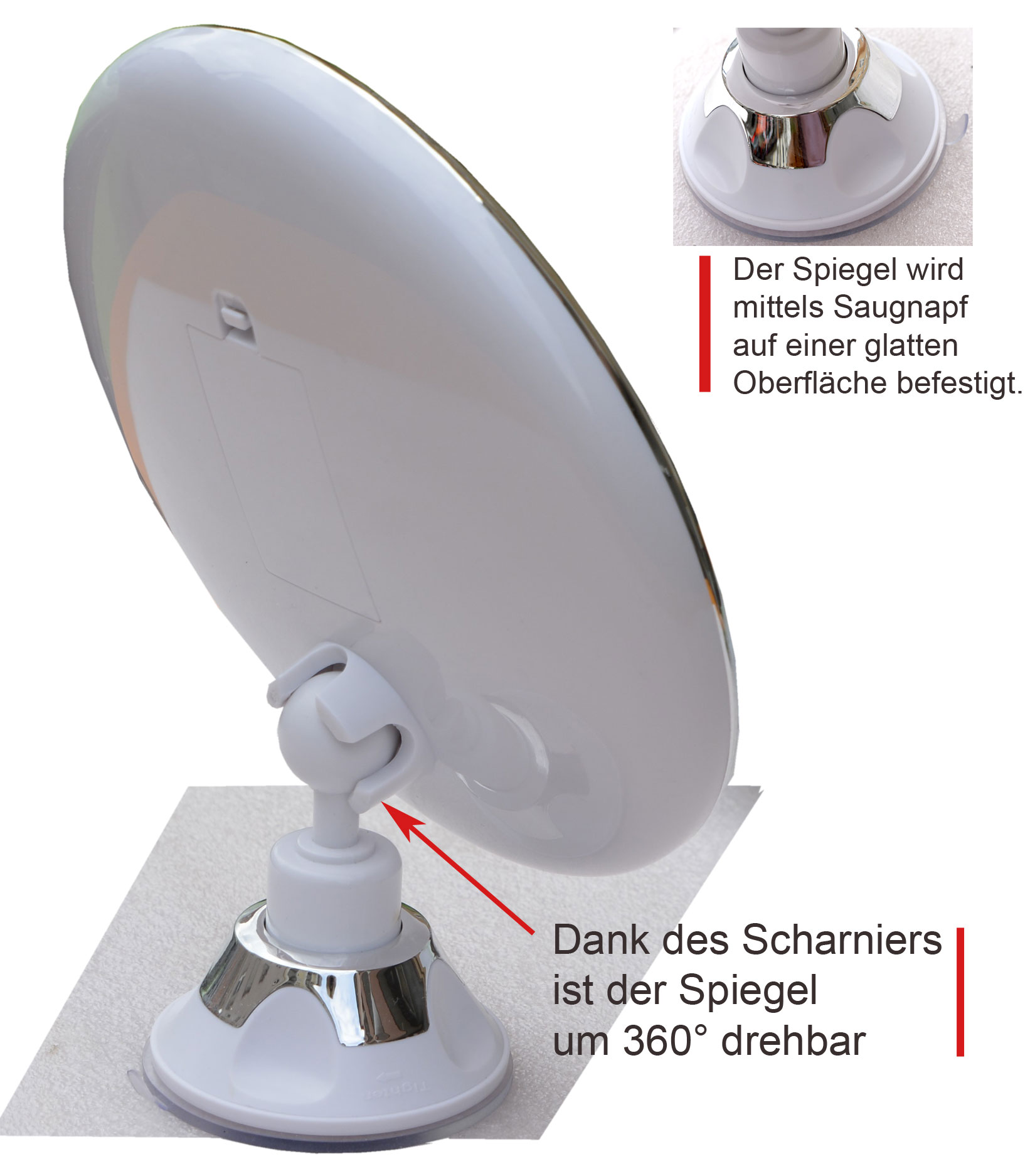 Lieferumfang: 1x Kosmetikspiegel 3x AAA-Batterien