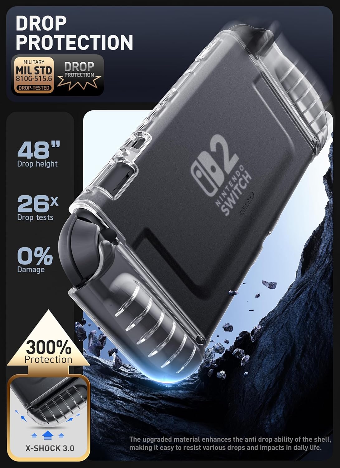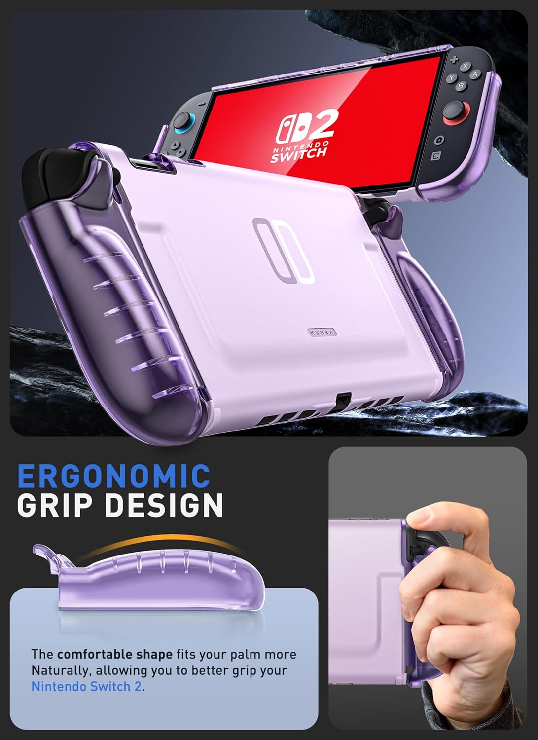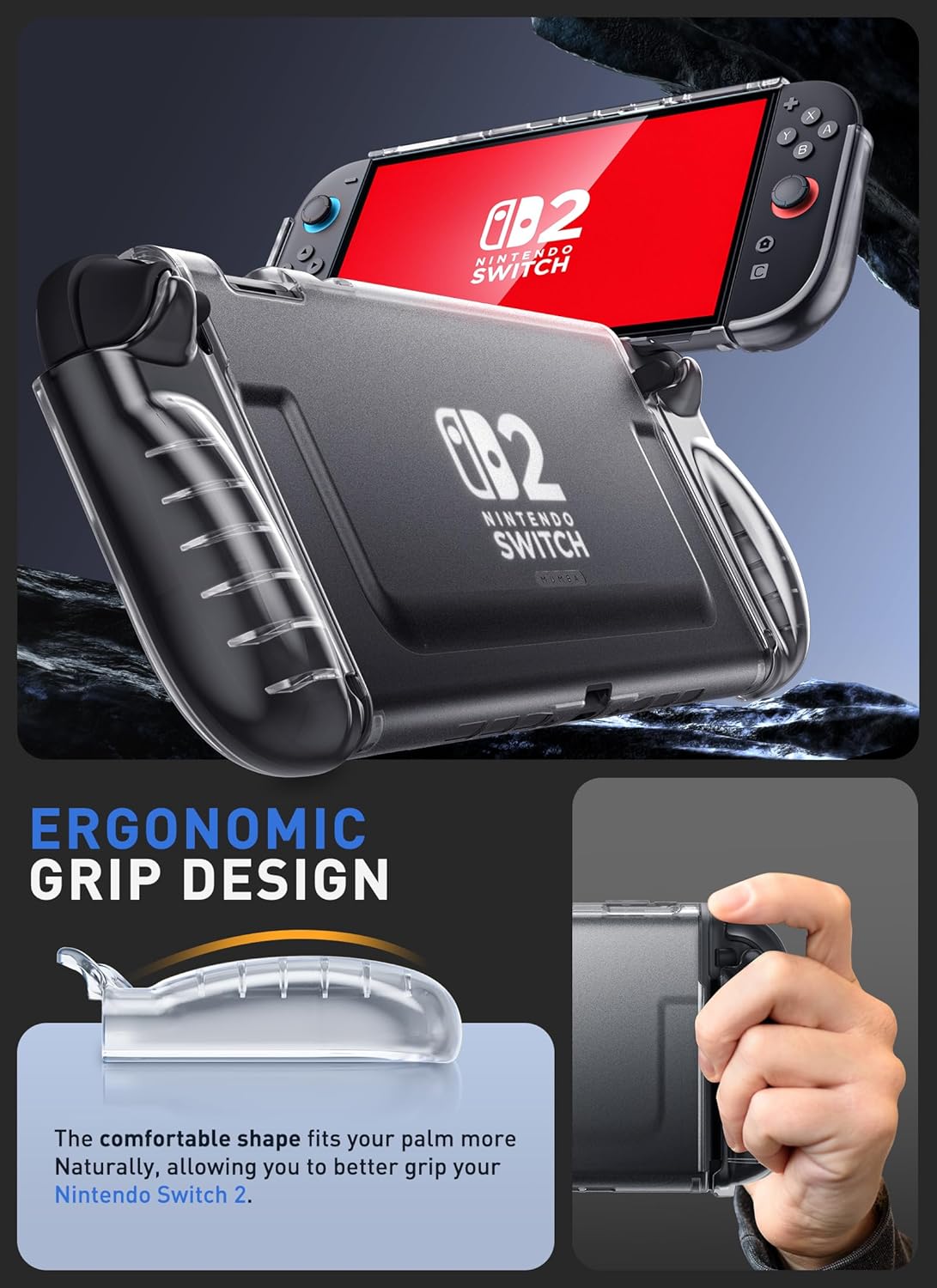 【Full Protection】Crystal-clear case with a unique design that shields Switch 2 ZL/ZR triggers from dings and scratches. The backplate is made of durable PC material, while the grip features TPU for scratch resistance and enhanced protection, ensuring long-lasting quality.