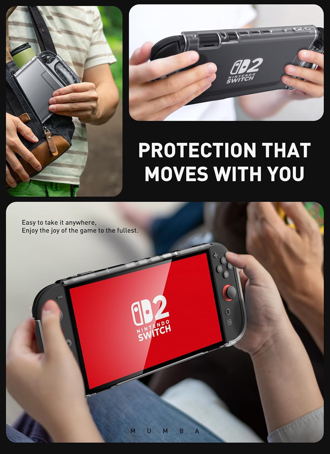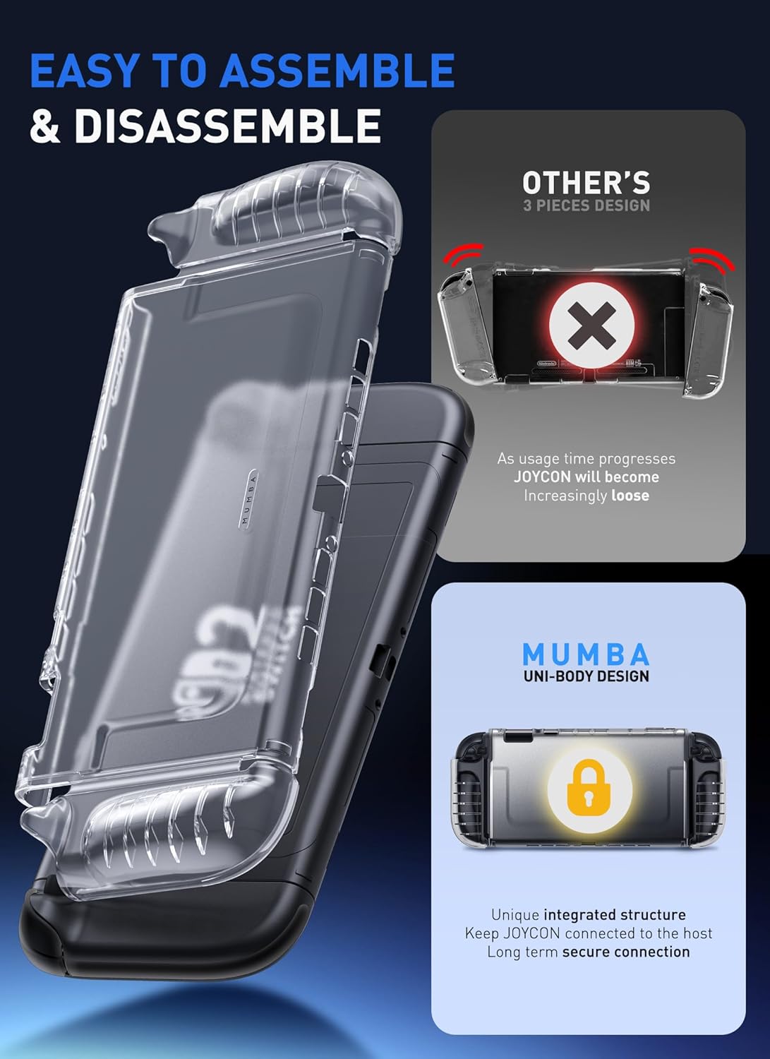 Mumba Clear Case for Nintendo Switch 2 2025, Crystal Protective Dockable Cover with Quick-Release Joy-Con Design and TPU Grip Compatible with New Nintendo Switch 2 7.9 Inch Console