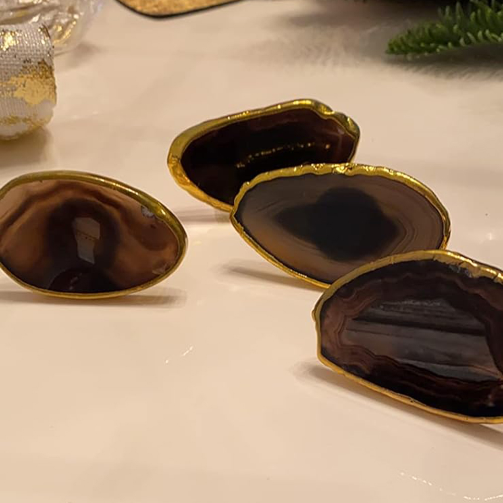 The napkin holders for cloth napkins are made of natural agate. Each piece of agate is different in shape, size, pattern, color darkness,texture.