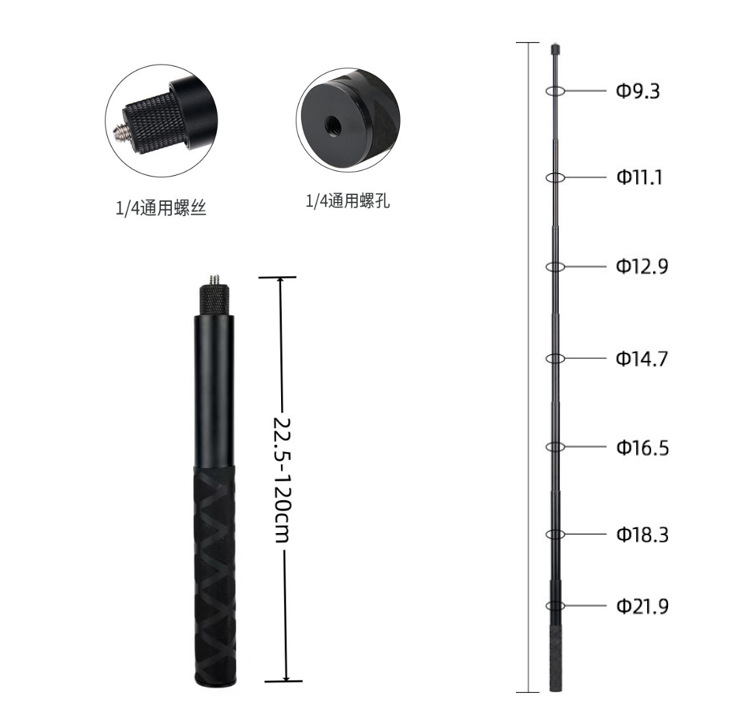 Pole length: contraction length 22.5cm fully extended length 120cm, using 7 sections of telescopic, the middle length can be adjusted at any time each section can be rotated to lock, especially strong!