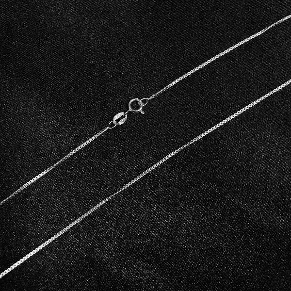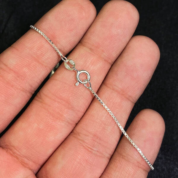 Drape your neck with glamour with this 925 sterling silver box chain necklace. The stunning necklace comes in various sizes, perfect for that comfortable and secure fit. Dress it up or dress it down, this chain does it all! A popular choice to wear alone or with the addition of one of our fine sterling silver pendants or charms. Easily worn on a daily basis as the box shape resists kinking and breakage. Stamped 925 sterling on bail and spring ring clasp. Made in Italy. 1mm thick.
