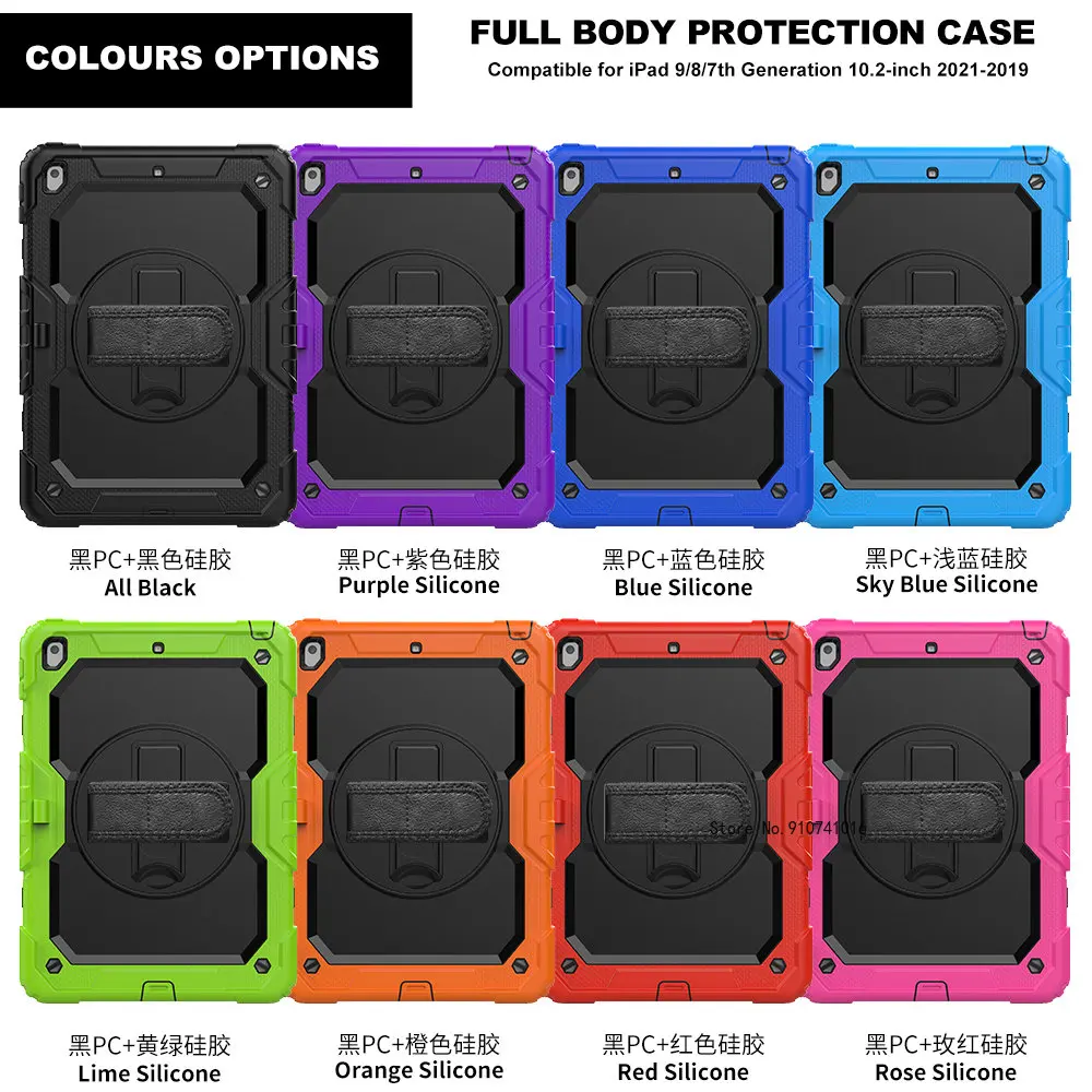 Kickstand Shockproof Case For iPad 10.2 7th 8th 9th 2019 2020 2022 10.2 Pencil Holder Cover+PET Screen Protector+Shoulder Strap
