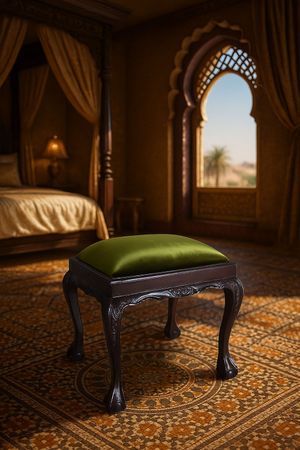 Der edle Sitzhocker „Villa Elmira“ ist ein vielseitiges Möbelstück, das klassischen Kolonialstil mit funktionalem Design verbindet.