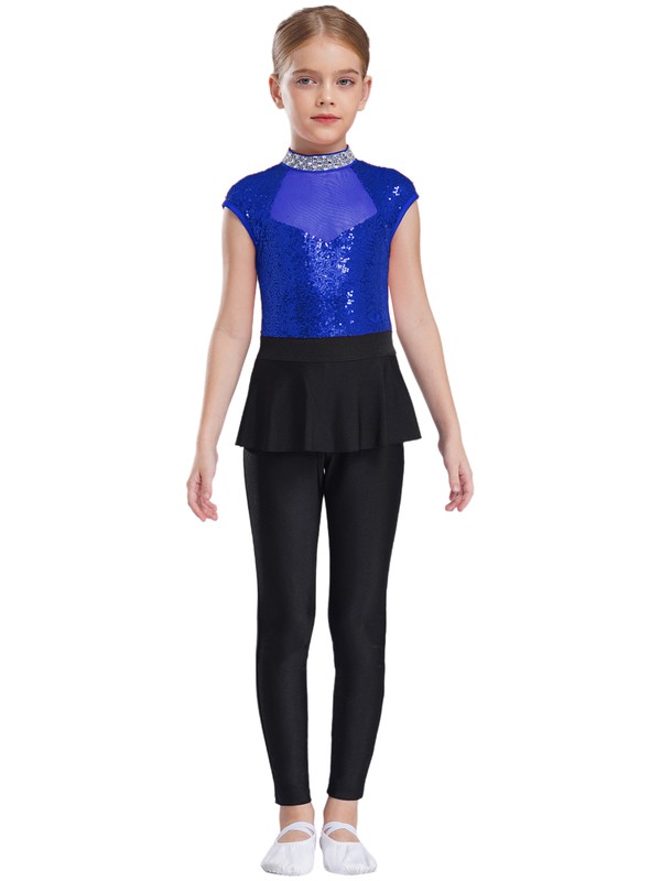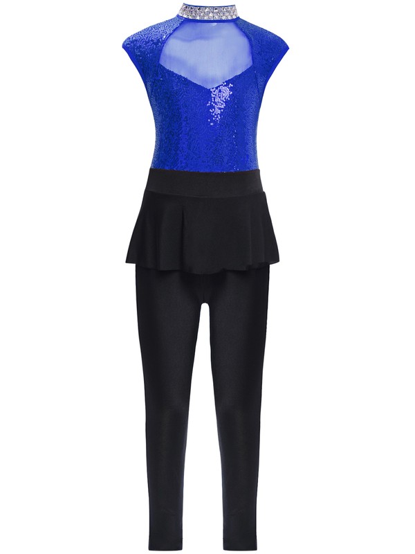 The neckline is decorated with rhinestones and the bodice of jumpsuit with shiny sequins makes your child stand out from the show.