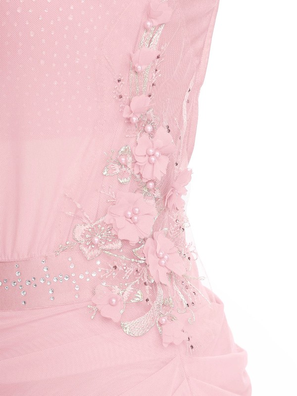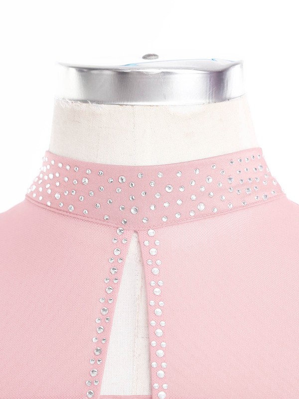 Women’s asymmetrical dance dress with cutout and ruched mesh overlay shows your femininity and makes you more charming.