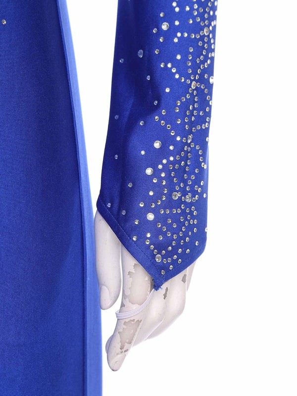 Made from a blend of polyester, spandex and rhinestone, offering flexibility and a dazzling sparkle, ensuring a comfortable and eye-catching fit during dance.