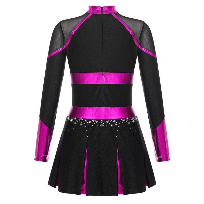 Girl’s cheerleading dance dress with glittery rhinestones letter pattern makes your child eye-catching in the crowd.