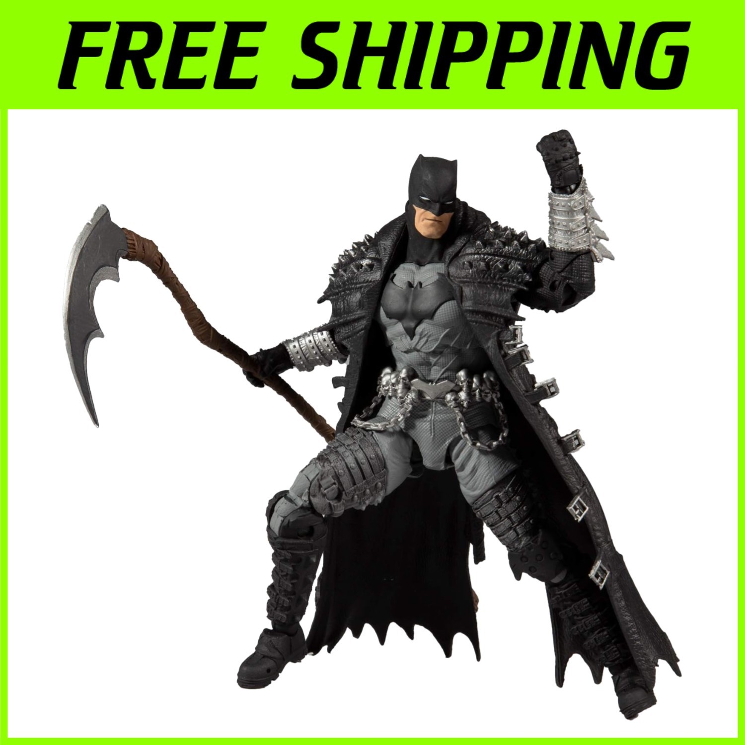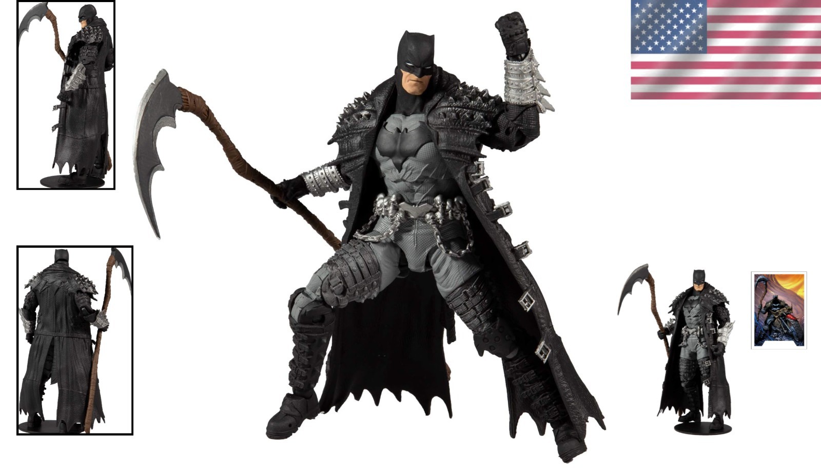 Includes a signature Bat Sickle and a display base for showcasing the Dark Knight in action.