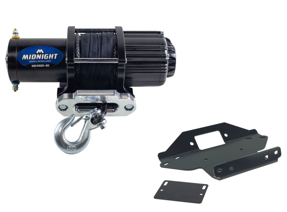 The VIPER Midnight 4,500lb Winch is a durable winch for ATVs, UTVs and Side by Sides. A great winch for snowplowing and mudding with ATV and UTVs, it has a sealed planetary metal gear train, a 1.8 horsepower permanent magnet motor, automatic brake, and stainless-steel hardware. Wireless remote switch, waterproof handle bar switch and synthetic rope are standard on this Midnight winch.