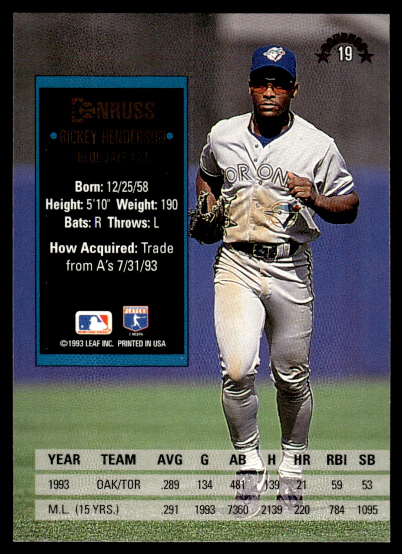 | RICKEY HENDERSON 1992 DONRUSS #19 |