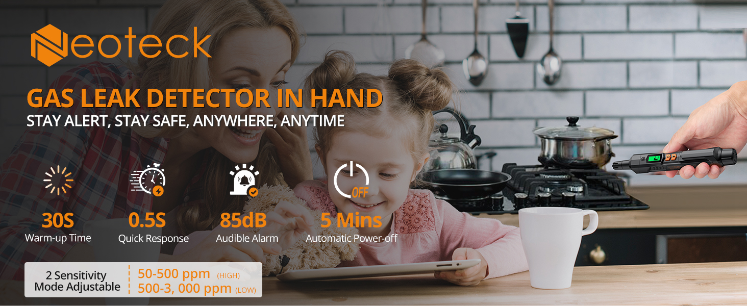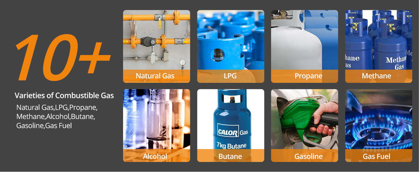 【Combustible Gas Leak Detector】It is suitable for LPG, methane, ethane, propane, butane, natural gas, coal gas, gas fuel, liquefied natural gas, etc., and it will exactly pinpoint a leak, reducing the risk of gas explosion and keeping your family and property safe. It potentially reduce energy bills