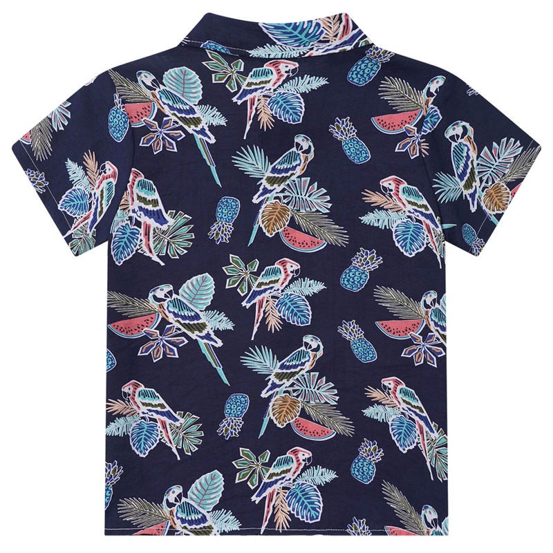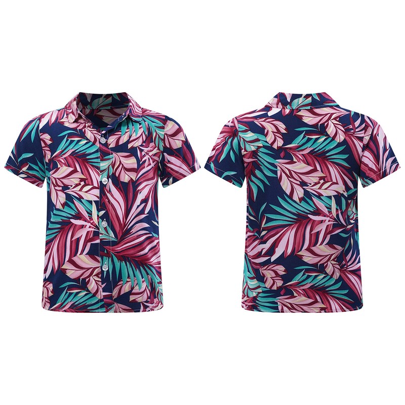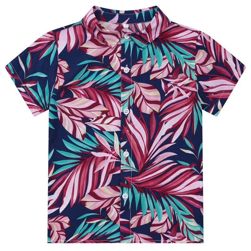 Boy’s short sleeve shirt is designed with tropical graphic print, turn-down collar and button closure for easy wearing.