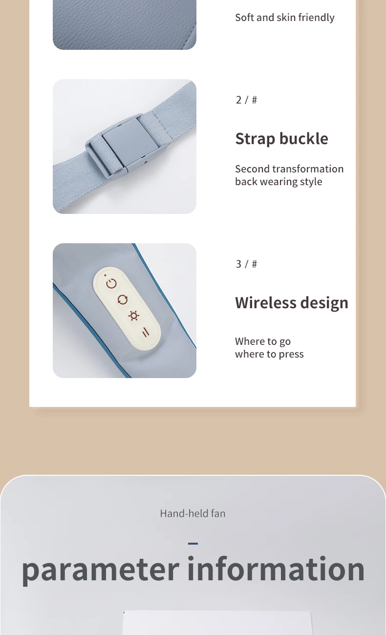 minutes, automatically turn off when the time is up to avoid excessive massage damage to muscles. Lightweight, not stuffy, comfortable experience.