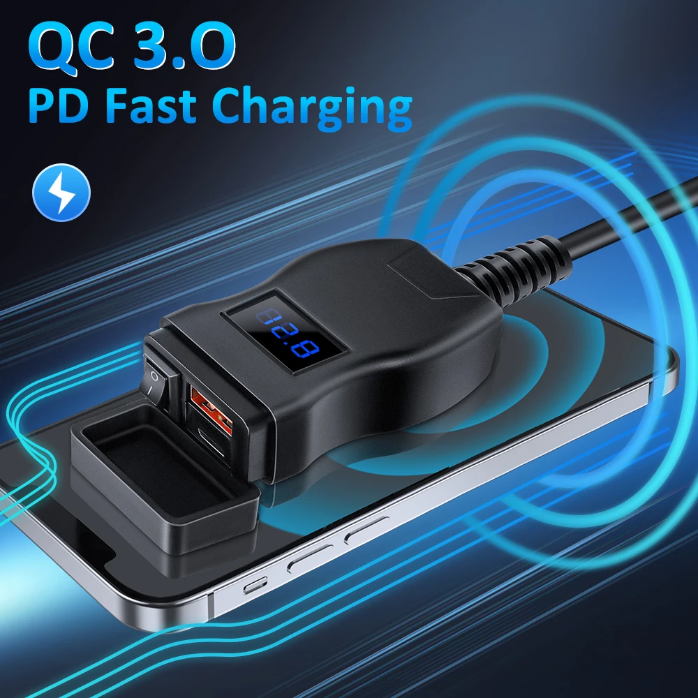USB-A and USB-C Charger - The motorcycle phone charger has USB-A and USB-C ports. You can charge two different devices at the same time.