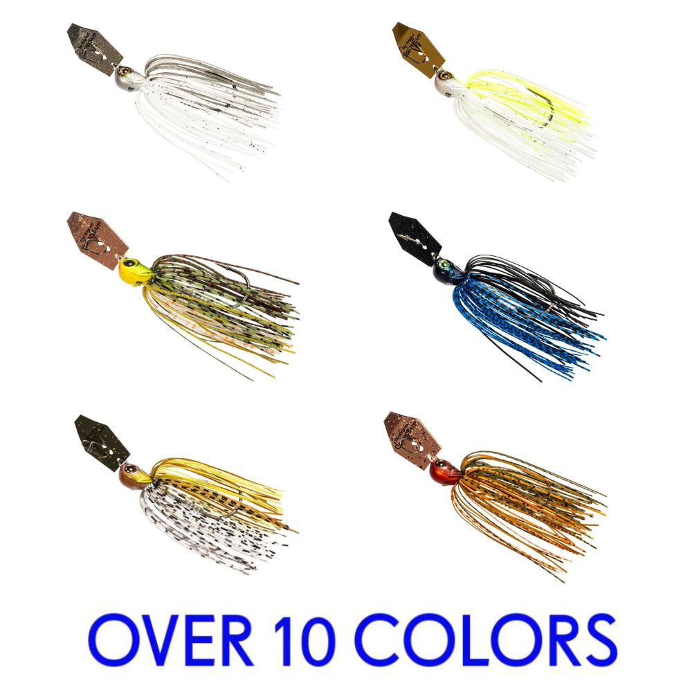 Featuring a patented direct head-to-blade connection and trademarked hex-shaped ChatterBlade, the Z-Man Chatterbait Elite EVO is designed to start vibrating immediately and produce erratic hunting action with each turn of the reel handle. Built around a 5/0 custom heavy-duty needlepoint black nickel hook, the Chatterbait Elite EVO is equipped with a stainless-steel blade offered in plated, painted, and glitter-coated finishes to mimic fleeing or distressed crawdads or baitfish. Fitted with wire-tied 100% silicone skirting material for increased longevity, each jig has a hybrid molded split grip and wire bait keeper to hold soft plastics securely in place and allow for easy rigging. A highly evolved performance-based and more cost-effective bladed jig, the Z-Man Chatterbait Elite EVO is equipped with oversized lifelike eyes and available in highly detailed pro-inspired head paint schemes and skirt color patterns.