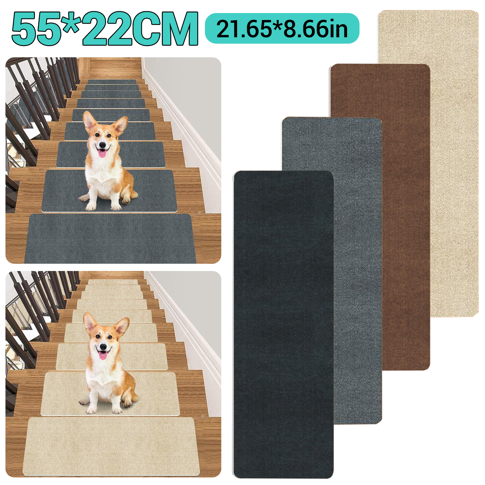 [Perfect Size with Free Cutting] The stair rugs and matsprecut size is 55*22cm This size and quantity can fit most of the indoor stairs. It can be easily cut to any size and shape as you need.