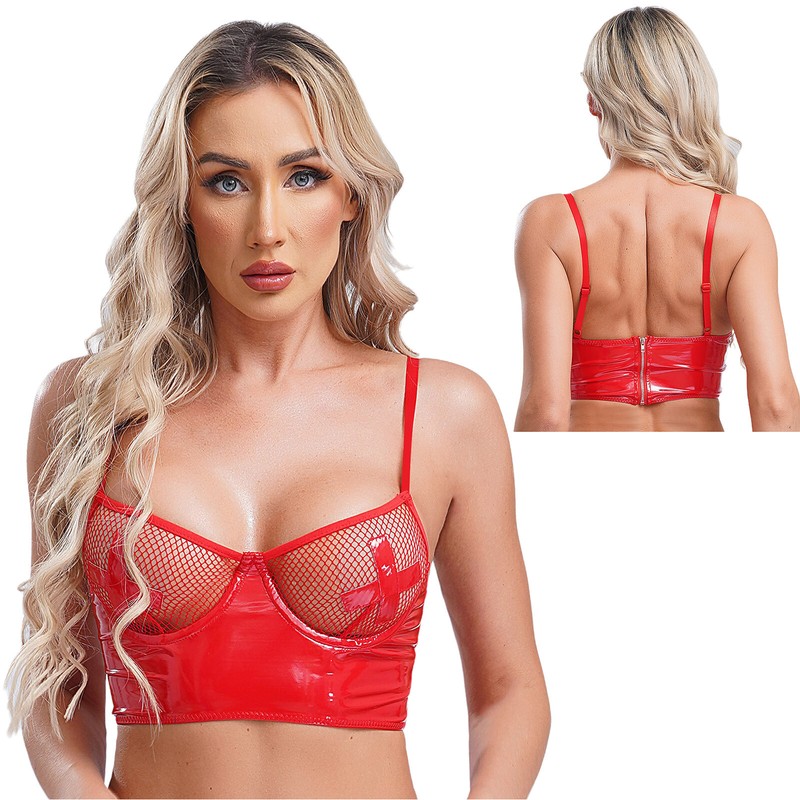 Glossy patent Leather brings a wet look for wild sense. Underwire provides good support to make great cleavage and upright breasts line.