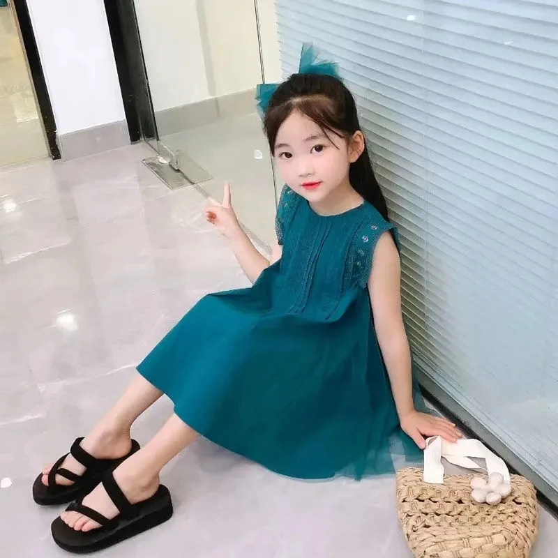 baby girl dresses summer solid cotton sleeveless dress for girls 2-8 year children's clothing casual dress girl