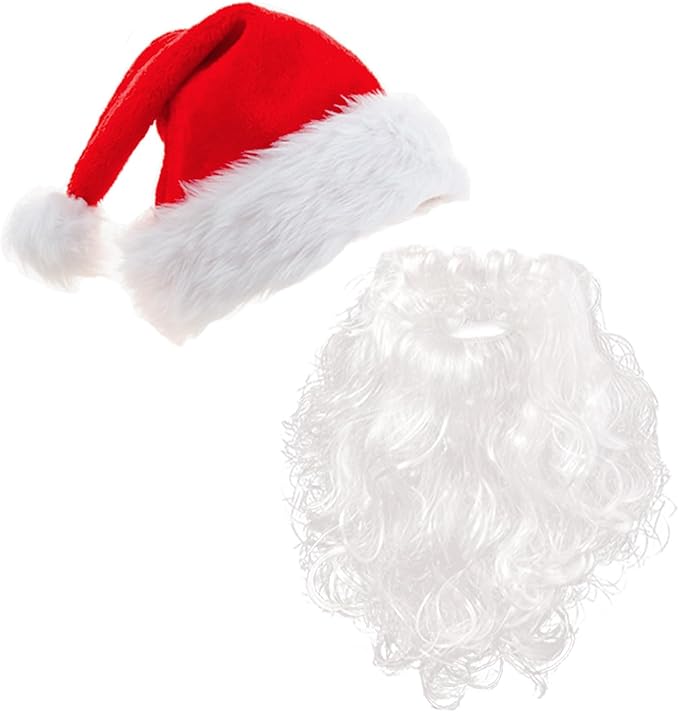 How can Christmas be without a Santa beard and hat set;
