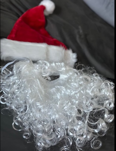 realistic Santa hat and beard set allows your friends and family to be “Santa” with you.