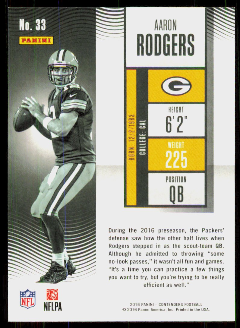 2016 Panini Contenders Aaron Rodgers Green Bay Packers #33