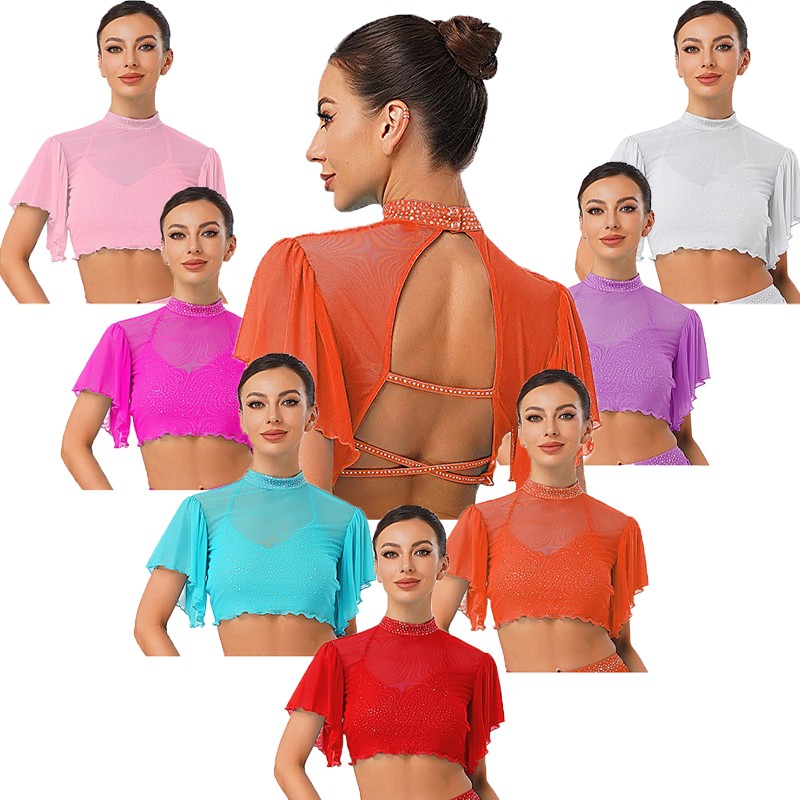 Suitable for various dance performances, dance classes, or even as a fashionable cover-up for casual outings, this top is a versatile addition to any dancer’s wardrobe.