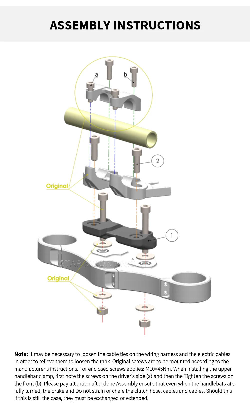 handlebar clamp, first note the screws on the driver's side (a) and then the Tighten the screws on