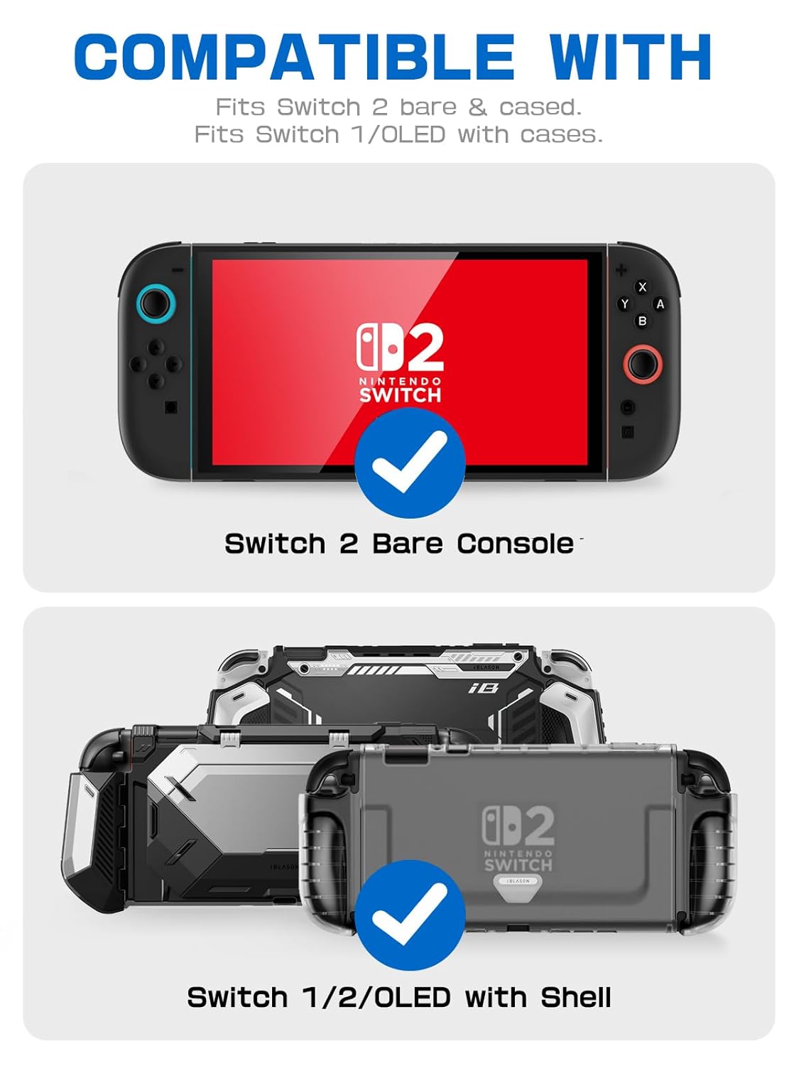 【Universal Compatibility】Designed for Nintendo Switch 2 (both bare console & with cases), also fits Switch OLED/Switch 1 with protective cases.
