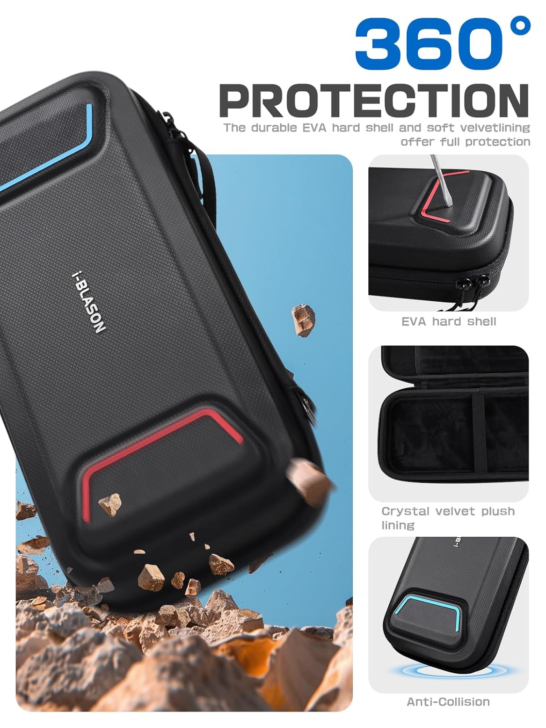 【Superior Protection】Built with shockproof, drop-resistant, waterproof, and wear-resistant PU material shell to safeguard your console from accidental drops. Built-in shock-absorbing pad and plush velvet lining inside provide 360° protection for both the screen and body.