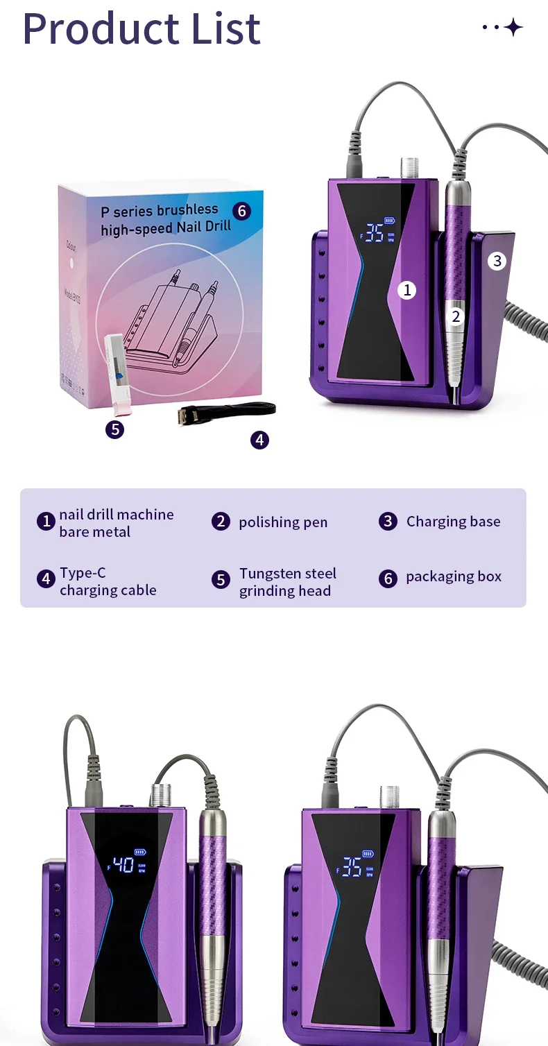 The New Brushless Rechargeable Electric Nail Drill is a high-performance tool designed for both professional nail technicians and at-home users. With a powerful 85W motor capable of reaching speeds up to 40,000 RPM, this nail drill ensures efficient and precise nail care.