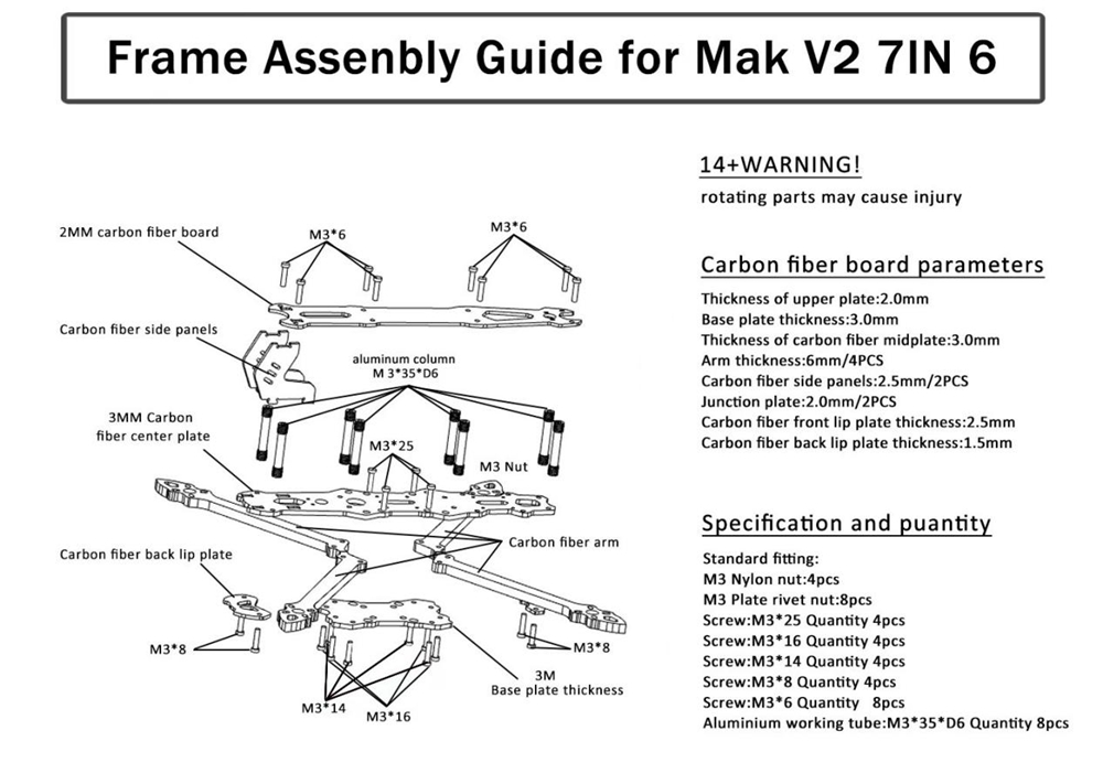 1 Set x Mark4 V2 7inch/8inch/9inch/10inch Carbon Fiber Frame Kit