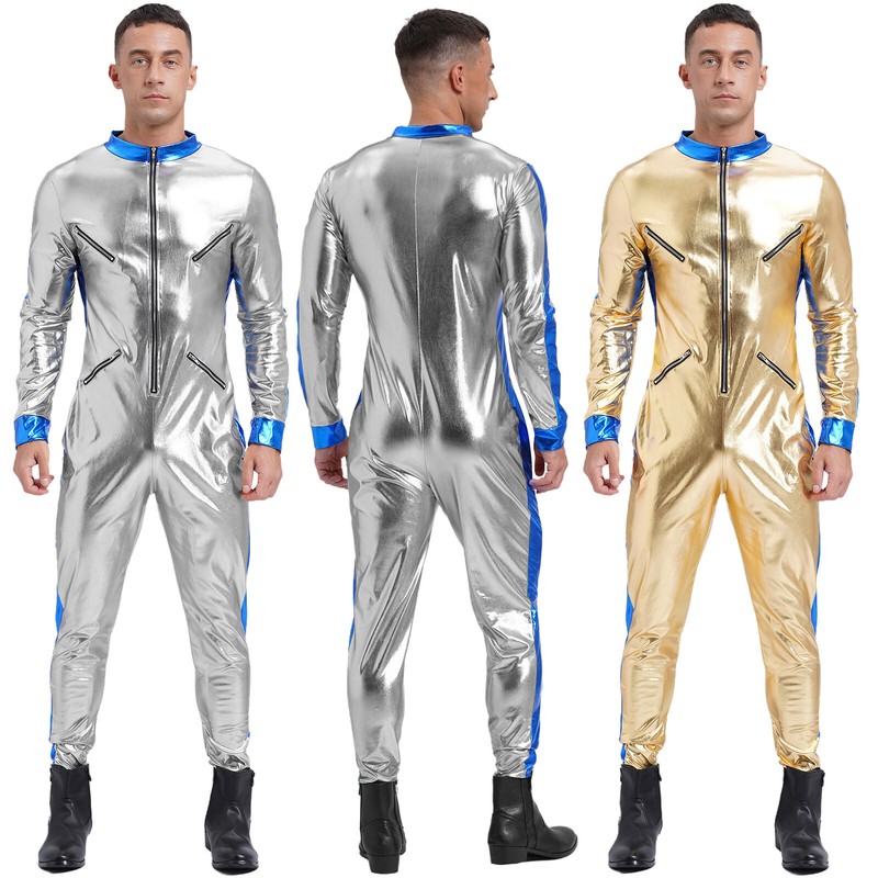 Ancient Egypt dress for men, contrast color, metallic shiny front drape, asymmetrical hem design. Match with a pair of cuffs.