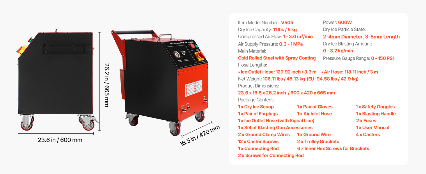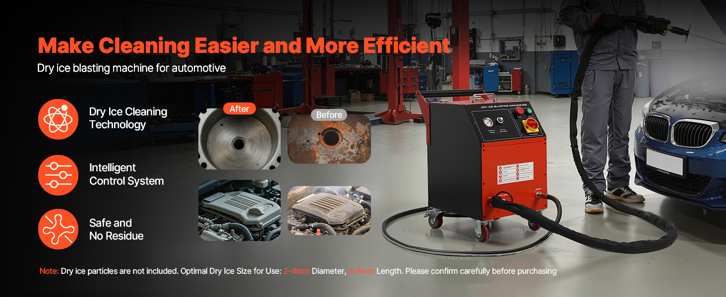 Experience safe and efficient automotive cleaning with VEVOR dry ice blasting machine. It features an intelligent control panel that allows you to precisely adjust the spray pressure and dry ice volume. Widely used in electric power, casting, auto, marine, ship, aviation and more industries fields.