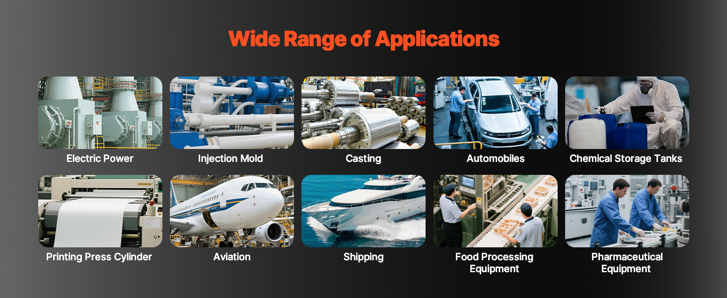 Widely use in electric power, injection mold, casting, automobiles, printing press cylinder, chemical storage tanks, aviation, shipping, food processing equipment, and pharmaceuticals equipment.