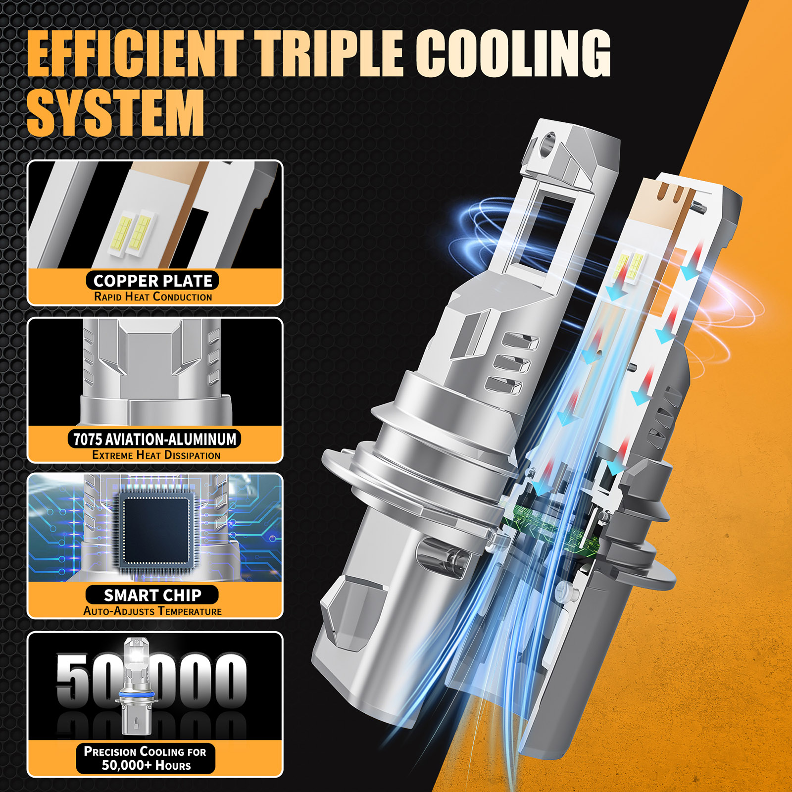Efficient Cooling System: Whole aviation aluminum body, unique hollow-carved heat sink design with Intelligent IC make sure the LED conversion kits last longer.