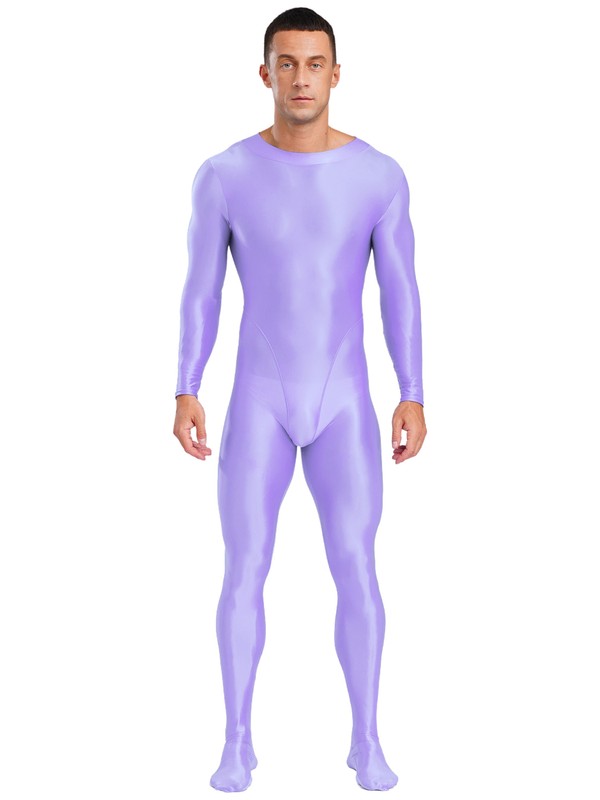 Mens Glossy Bodysuit Zip Back Suit Long Sleeve Leotards Footed Jumpsuit Bodysuit