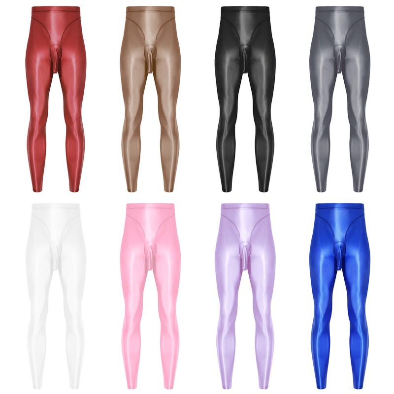 Mens Glossy Stretchy Tights Sheath Yoga Bodybuildings Compression Pants